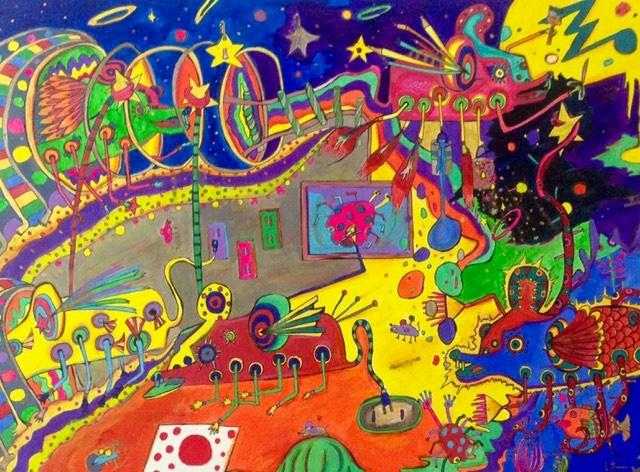 私の絵はカラフルなたくさんの色を使っていて、ワクワクするパワーを沢山の方々に感じとってもらいたくて描いています。