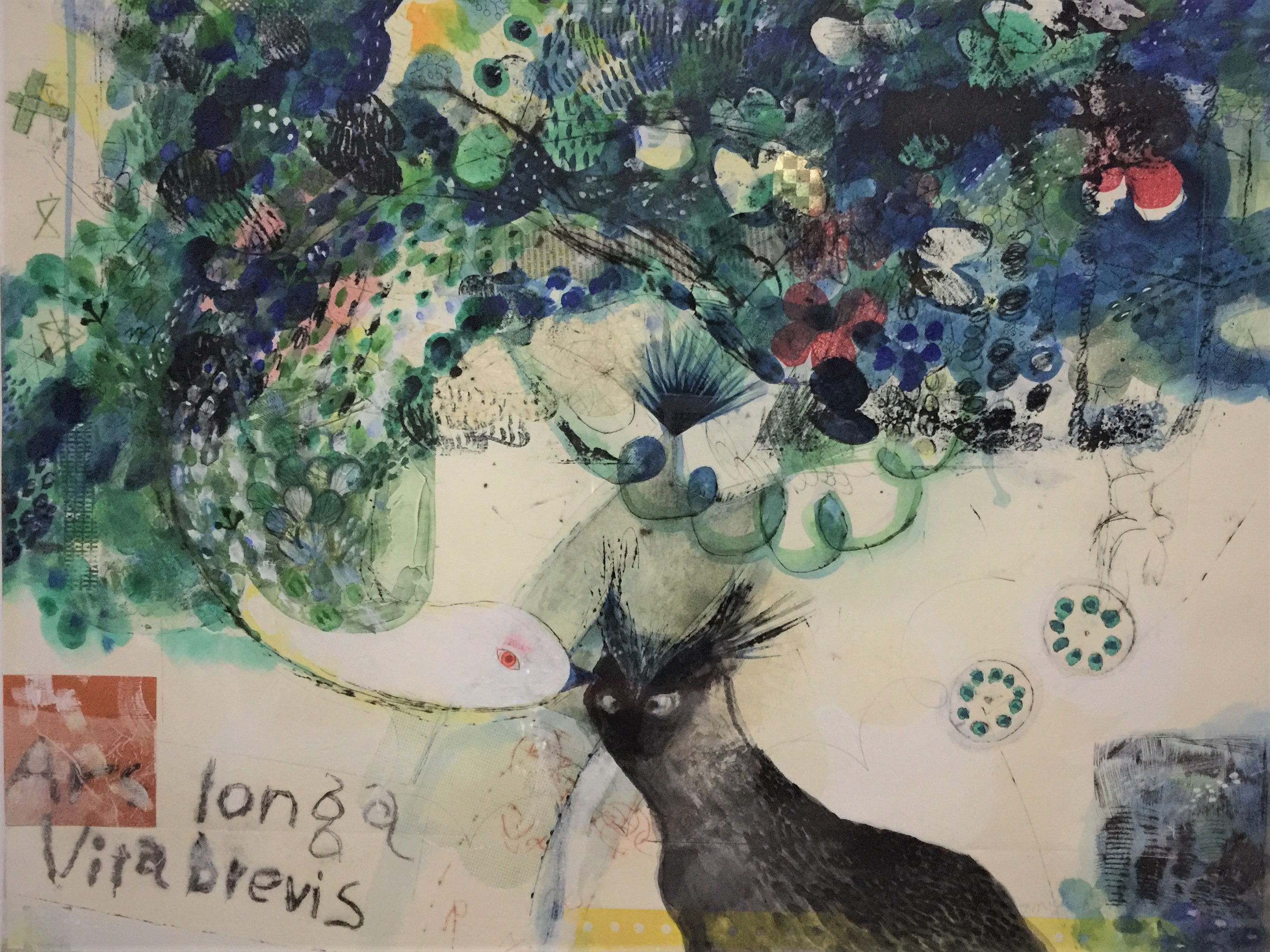 銅版画、ドライポイント、コラージュ、手彩色