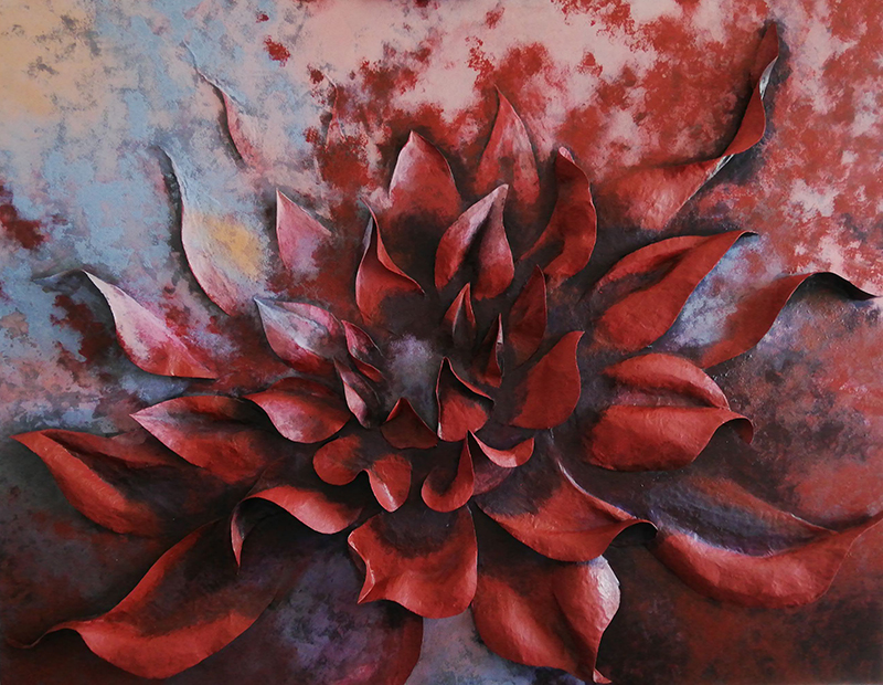 キャンバスに10cmにも満たない奥行き(半立体)をつくる。